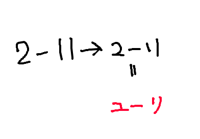 仕事場でお客さんに住所書いてもらったら、番地の 「2-11」 が 「ユーリ」 に見えましたっていう図。